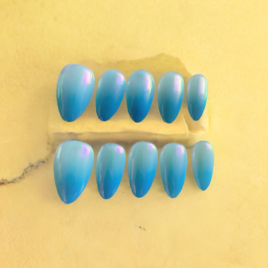 White-to-Blue Chrome Ombre – A dazzling gradient that reflects light beautifully, giving your nails a futuristic, icy glow.