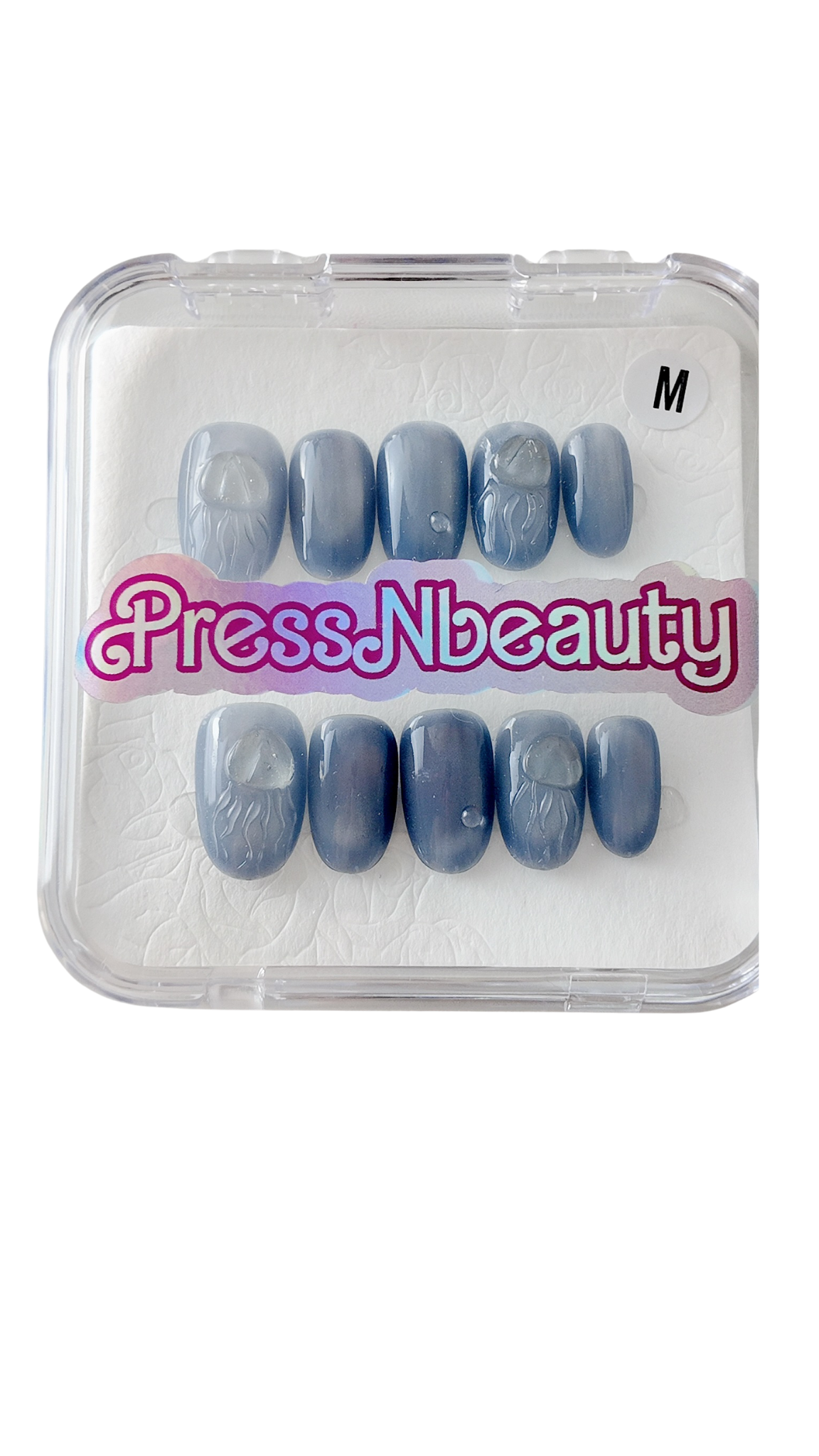 Dive into celestial elegance with Lunar Drift from PressNBeauty — a luminous silver set that shimmers like moonlight on gentle waves. The high-shine chrome finish captures every glimmer of light, while the delicate jellyfish imprint drifts across the nails, evoking the beauty and mystery of the deep sea. This unique blend of ocean grace and metallic brilliance makes Lunar Drift an unforgettable statement.