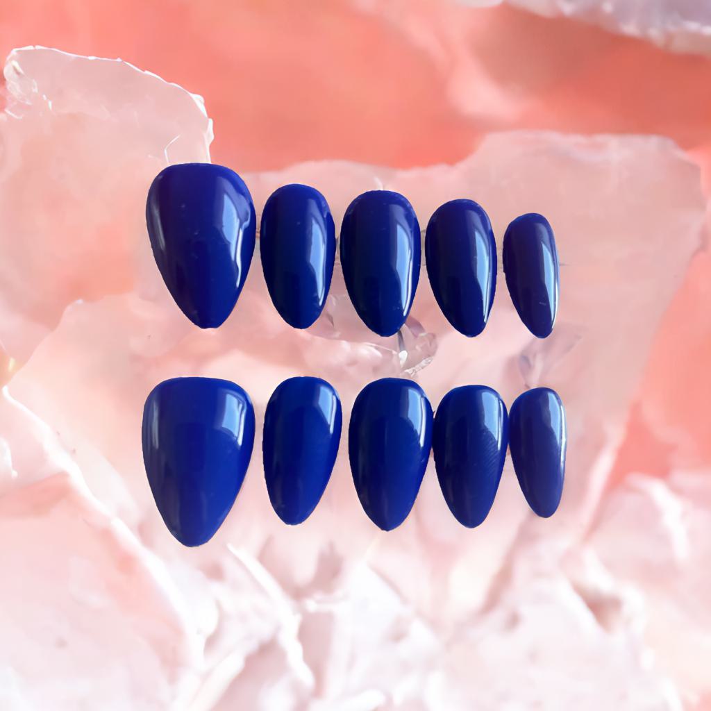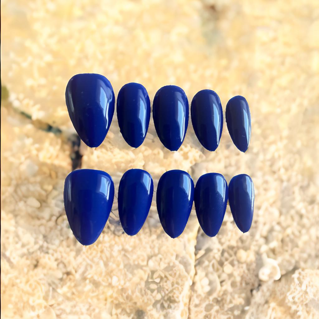 Step into elegance with Midnight Veil, a set of deep midnight blue press-on nails that offer a glossy, salon-quality finish. Perfect for evening events or adding a touch of sophistication to your everyday look, these nails are bold, chic, and timeless.