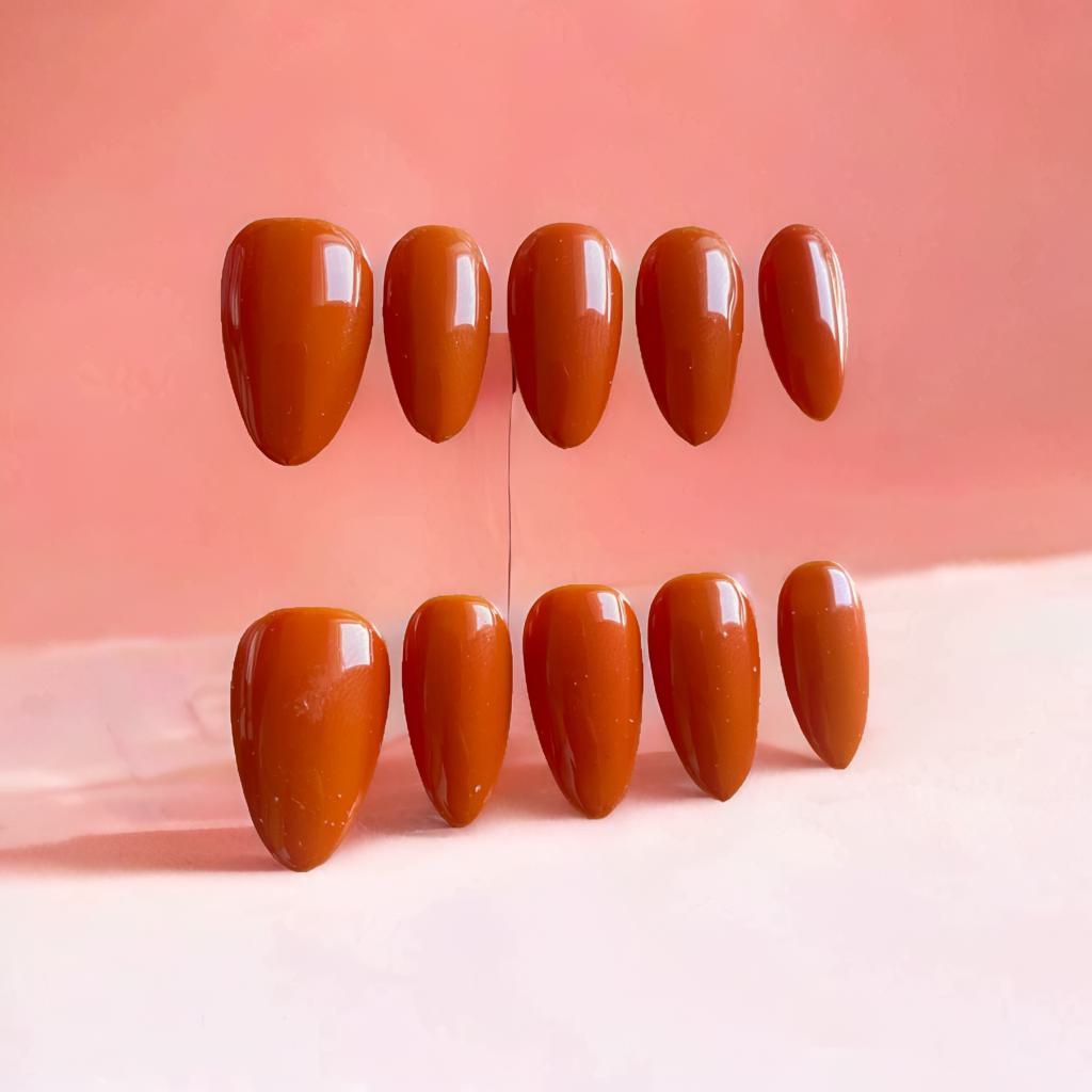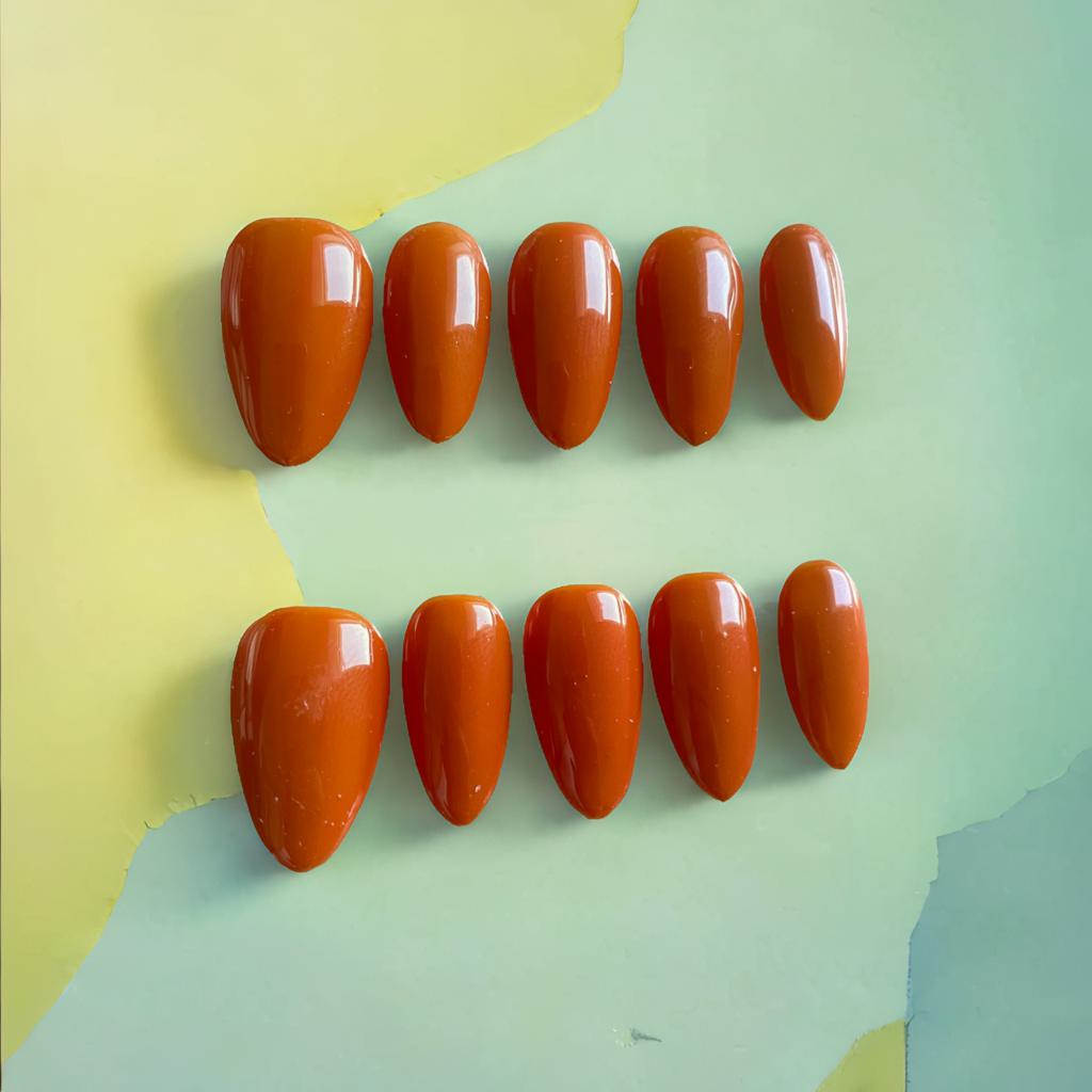 Vibrant Orange Glossy Finish ā Bold, festive, and perfect for Halloween or fall-inspired manicures.